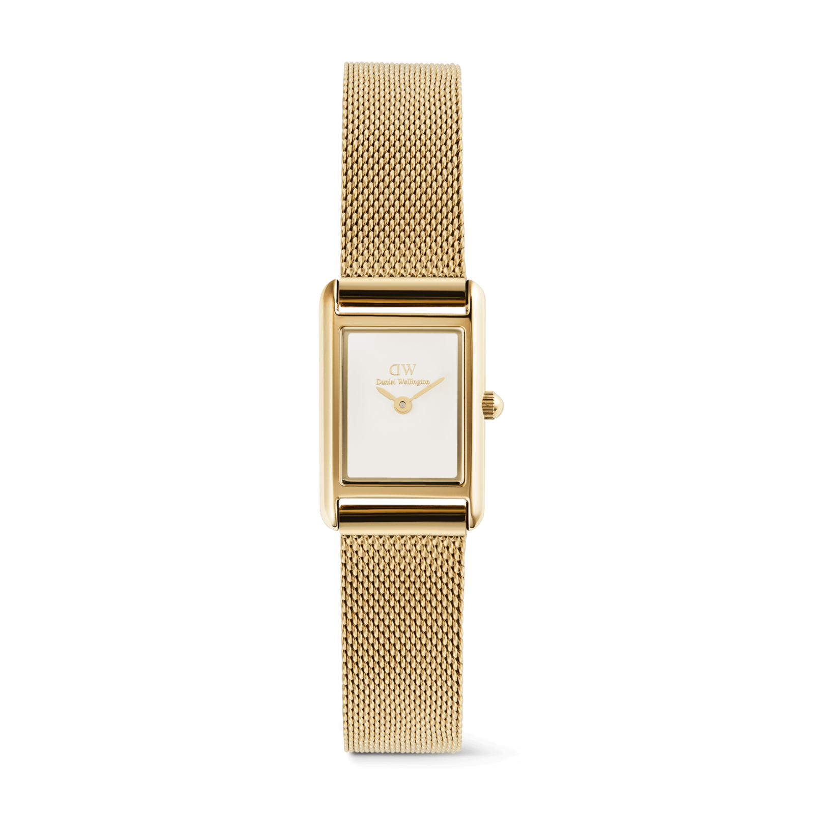 Orologio donna daniel wellington, DW00100928, collezione bound mini, movimento al quarzo, solo tempo, cassa in acciaio dorato 17x25, 9mm, quadrante bianco, cinturino maglia milano in acciaio dorato, resistenza all'acqua 3atm